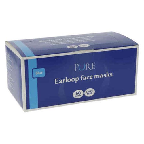 MONDMASKERS PURE BLAUW NON-LATEX EARLOOP 50ST